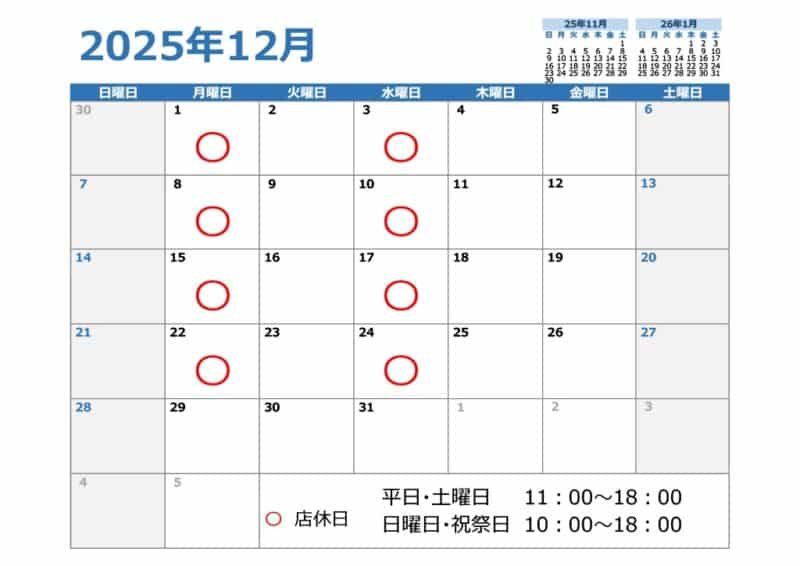 【12月】営業のご案内